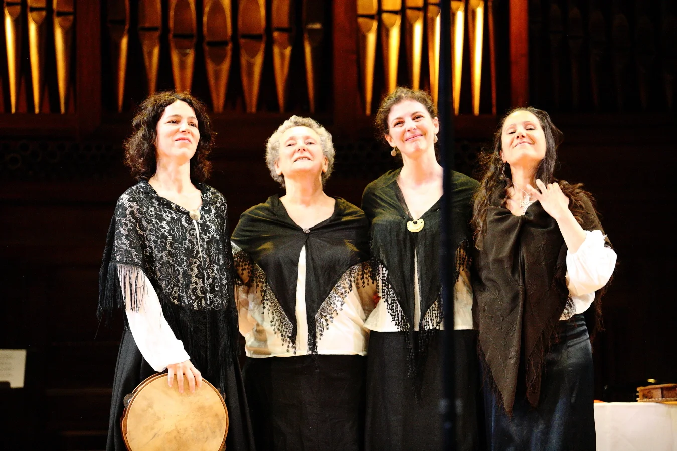Cantaderas is a new ensemble created by Ana Arnaz in 2015. It is devoted to Spanish traditional music and its relationship with specific Medieval repertoires, and, more generally, with specific Early Music repertoires. It is composed of four singers: Ana Arnaz, Anne-Marie Lablaude, June Telletxea and myself, all of us coming from Early Music singing studies and having all worked with the specialist Dominique Vellard. The premiere took place in the 2016's edition of the Festivoce of Pigna, Corsica. Ever since we've performed in Spain (Ipiés (Huesca), Urueña, Ronda, Baiona, Madrid), France (Sigolsheim, Le Thoronet, Mont St. Michel), Switzerland (Basel, Witterswil), Germany (Naugarten, Dresden, Altfriedland), Poland (Osno Lubuskie)… Our first CD, “As festas do anno”, recorded on November 2018 at the “Cité de la Voix” (Vézelay, France), has been released by the French label Arion in October 2020.